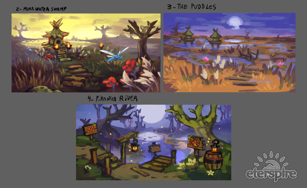 The Bogtown Marsh area is also in development and will be released in the next update! Here’s some more concept art so you can start preparing for some humid, muddy, goblin-filled adventures: