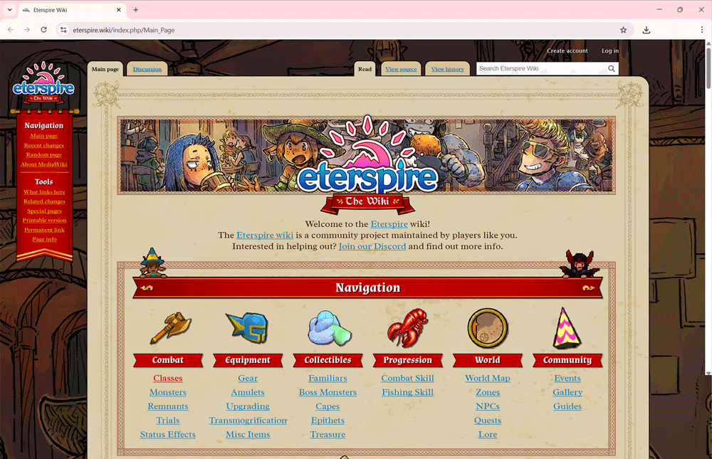 After a couple of mishaps, the Eterspire Wiki is now upgraded and stable. As per our Roadmap, we're now working on a complete redesign. Here's a preview! (Not the final look, just a mock-up.)