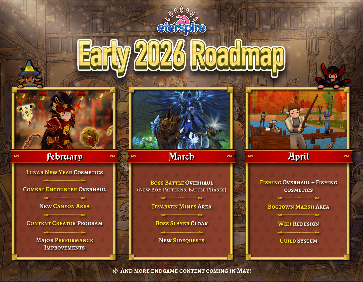 This is our roadmap for February, March, and April 2026, outlining the features and improvements we currently have planned for the game.